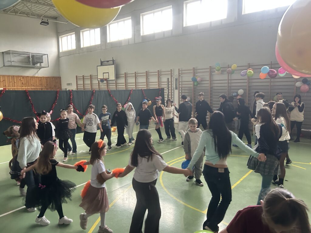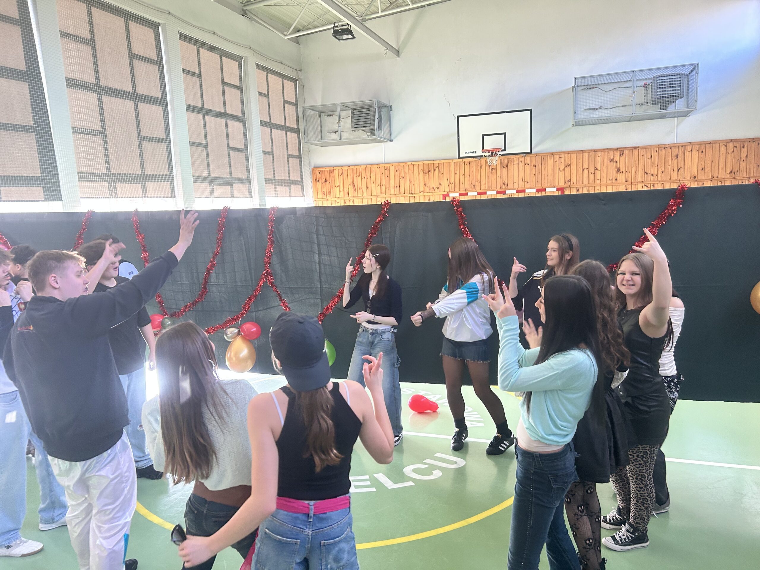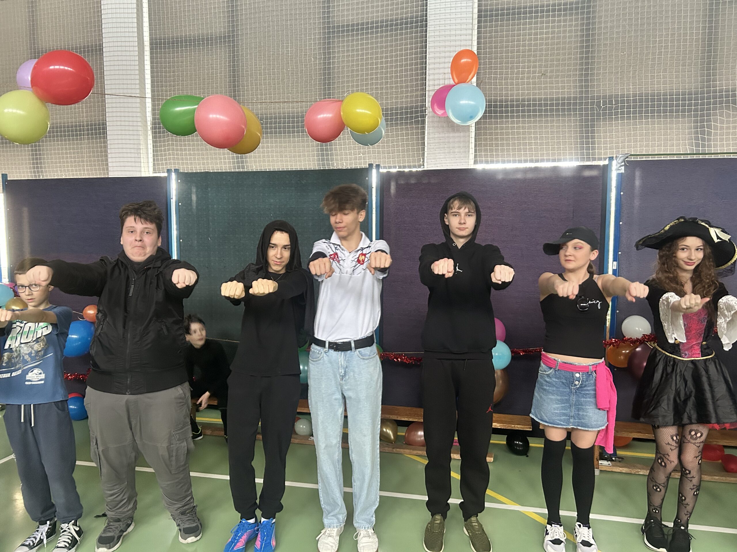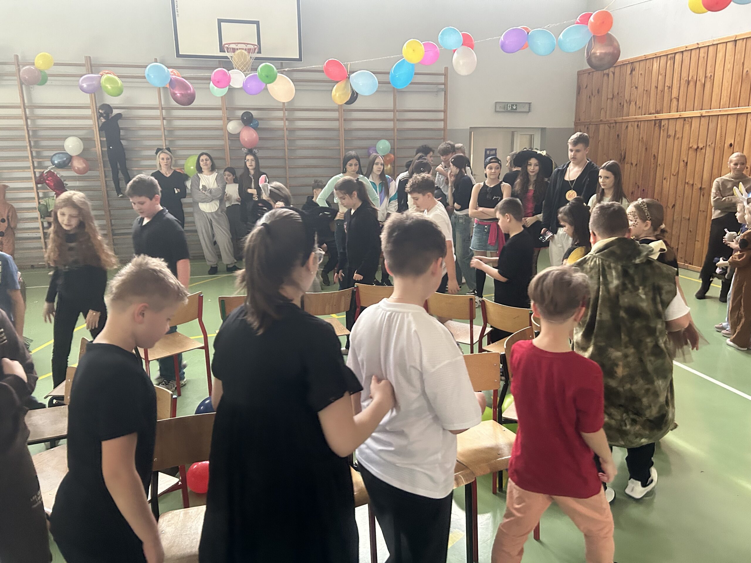 Podczas balu nie zabrakło zabaw integracyjnych, które wywołały mnóstwo śmiechu i pozwoliły uczniom jeszcze lepiej się poznać. Wspólne tańce i zabawy sprawiły, że parkiet ani przez chwilę nie był pusty – energia i uśmiechy towarzyszyły nam przez cały dzień 🥳.