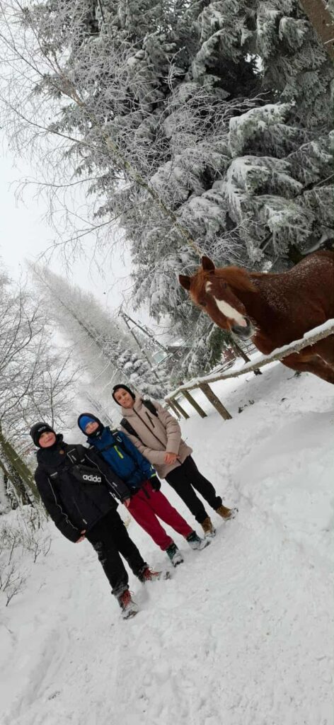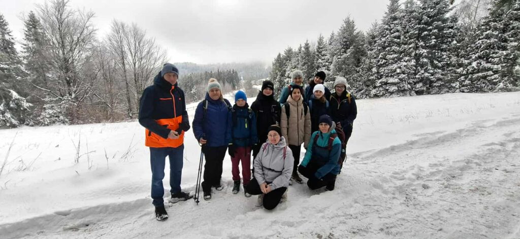 Tym razem wystartowaliśmy z Węgierskiej Górki i idąc czerwonym szlakiem, wdrapaliśmy się na szczyt Abrahamów (857 m n.p.m.). Po krótkim odpoczynku w Stacji Turystycznej Abrahamów ruszyliśmy dalej, kierunek: Słowianka (940 m n.p.m).