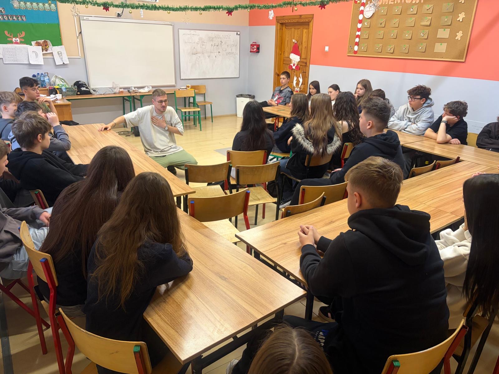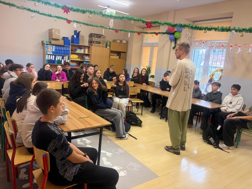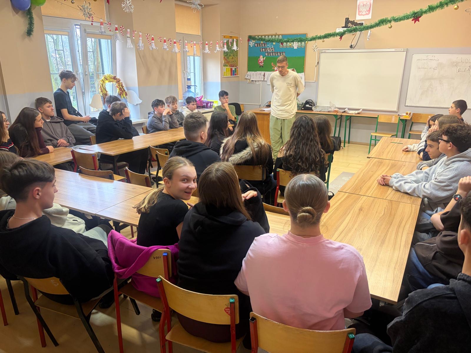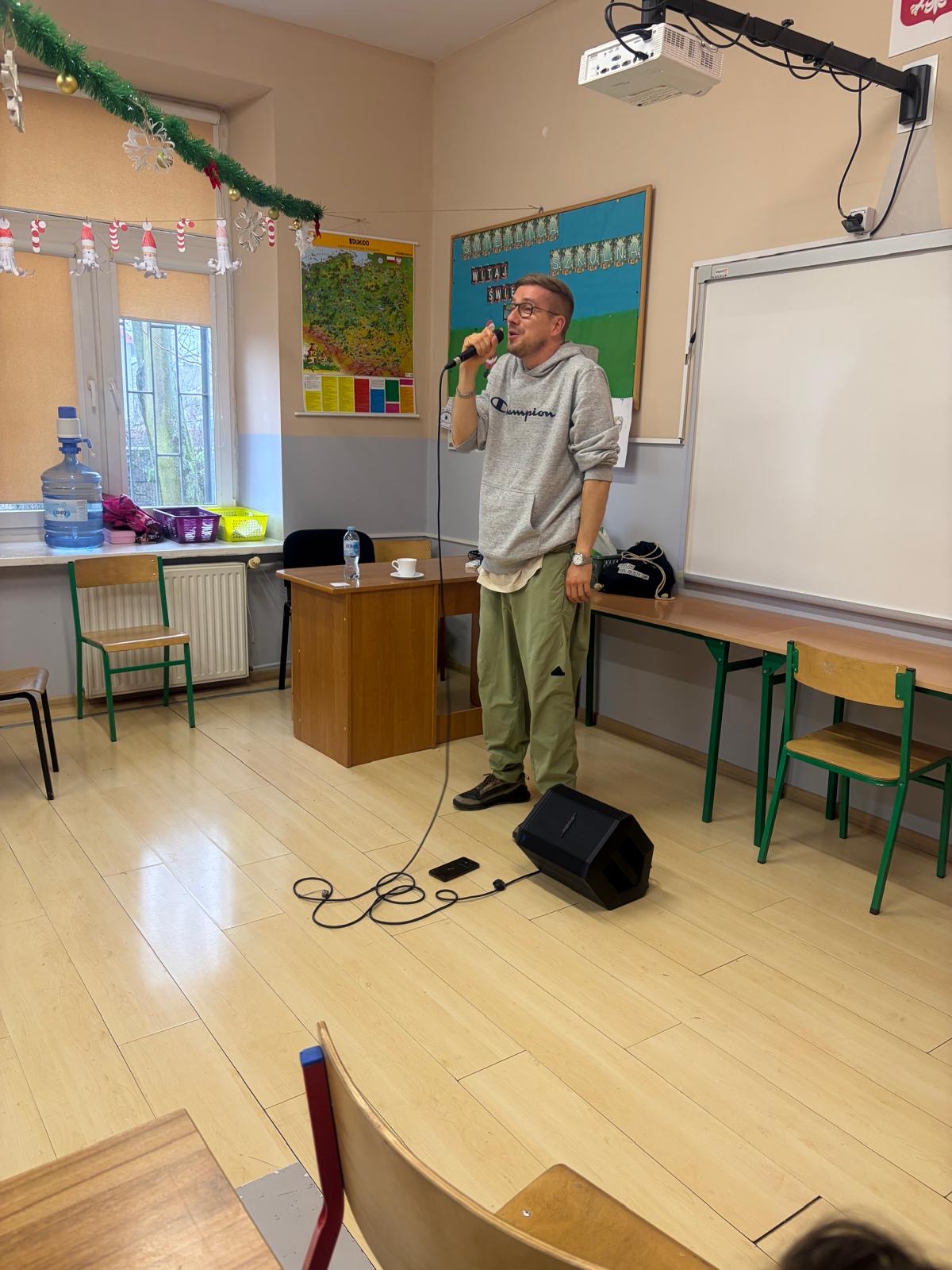 Starsze klasy miały okazję porozmawiać o trudniejszych, ale niezwykle ważnych kwestiach – przemocy, manipulacji, uzależnieniach oraz kulturze hip-hopu. Wiedza, którą przekazał prowadzący, była bogata i szczera, często oparta na jego własnych, życiowych doświadczeniach.