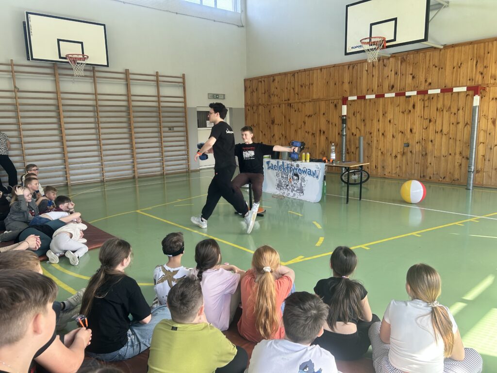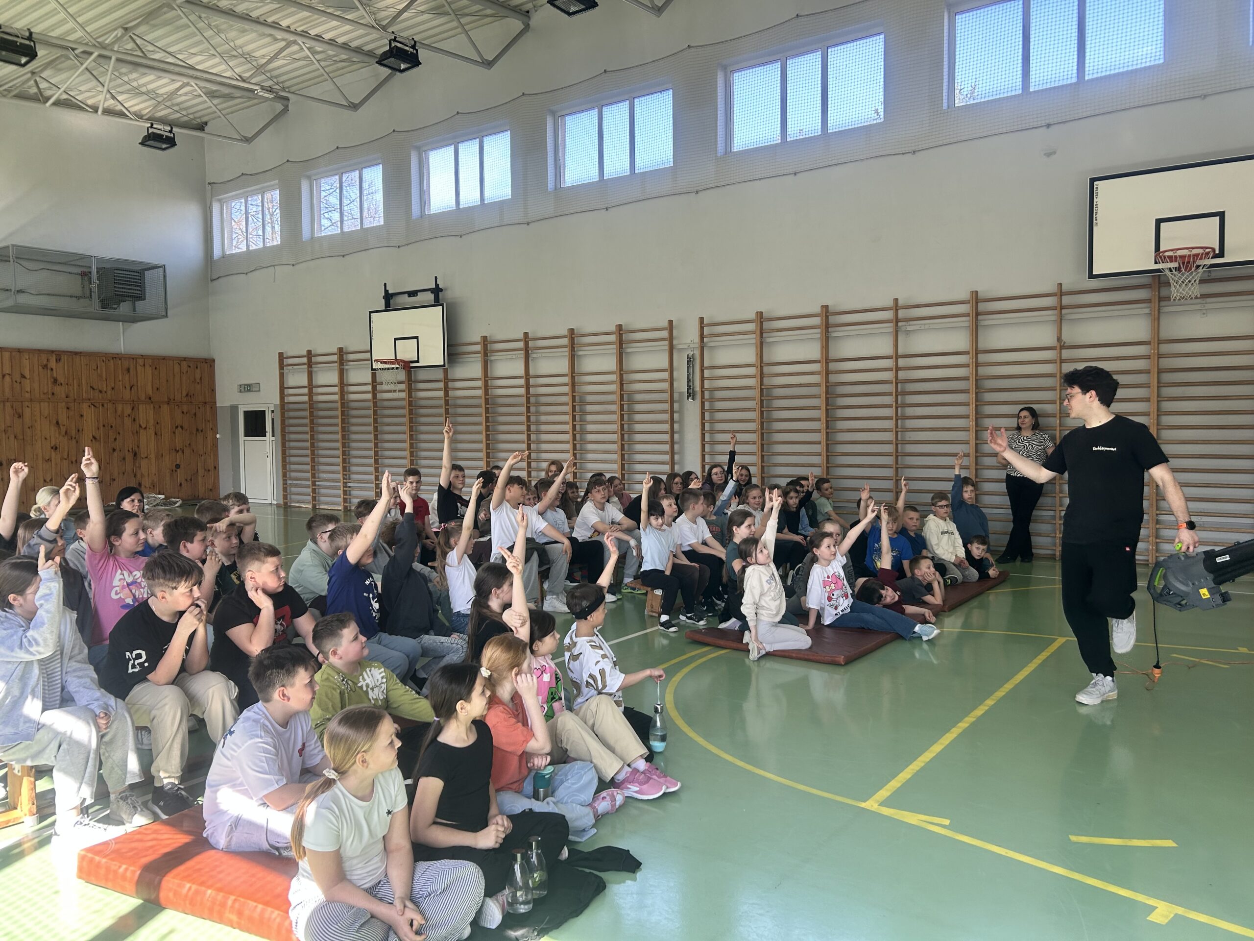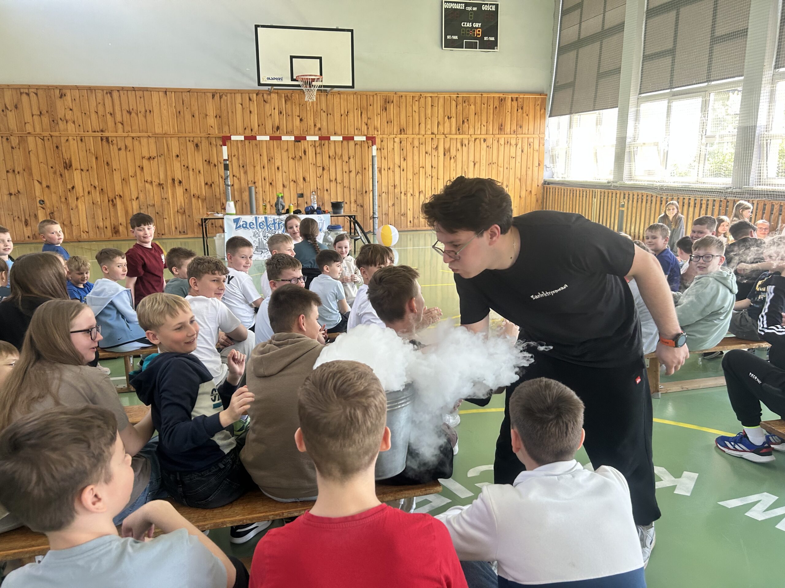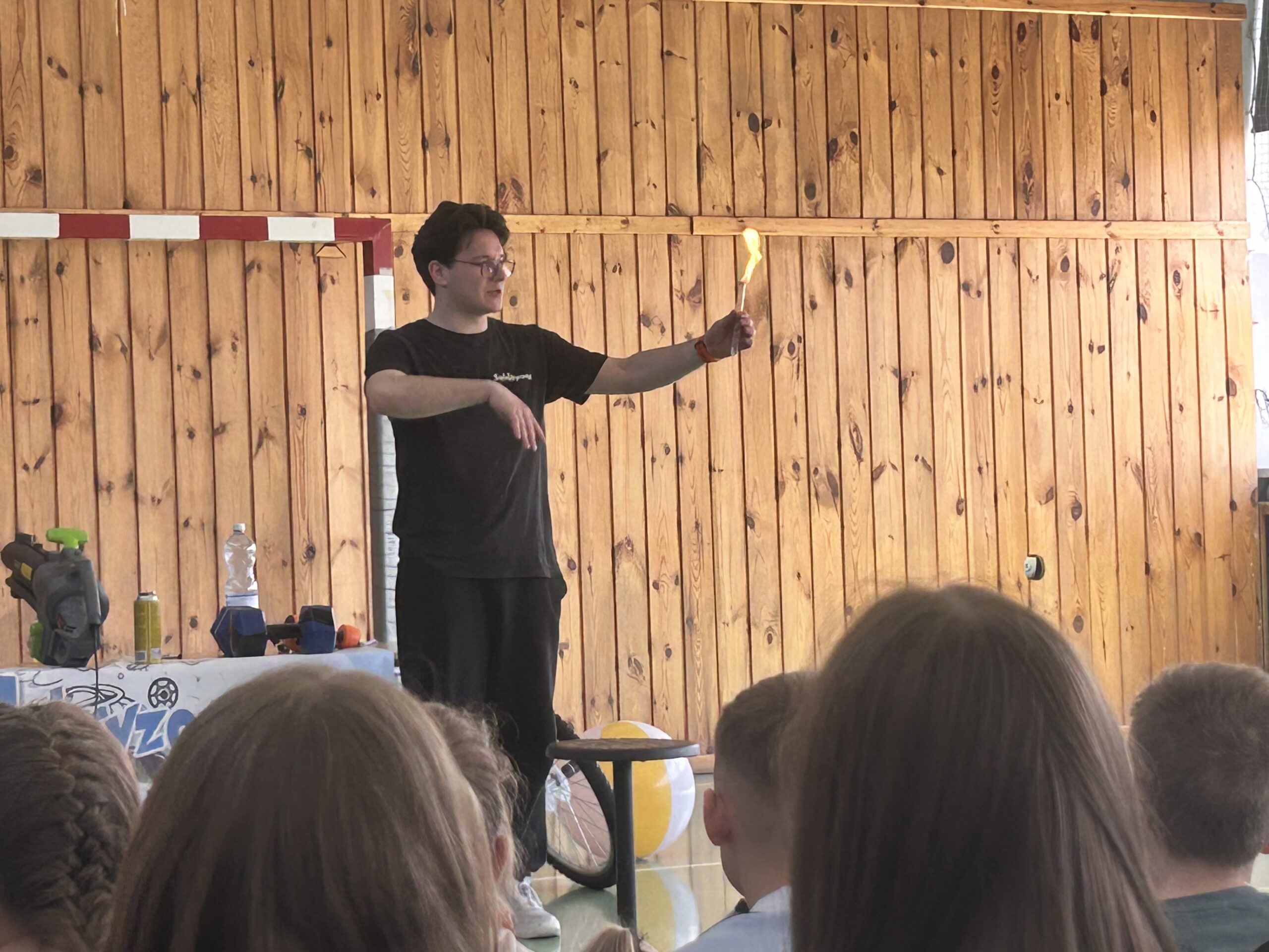 Uczniowie mieli okazję zobaczyć, jak w praktyce działają różne zjawiska fizyczne i chemiczne, a także aktywnie włączyć się w wybrane doświadczenia 🧪. Zajęcia były nie tylko świetną zabawą 😊, ale również cenną lekcją, pokazującą, że nauka może być ciekawa, dynamiczna i pełna emocji.