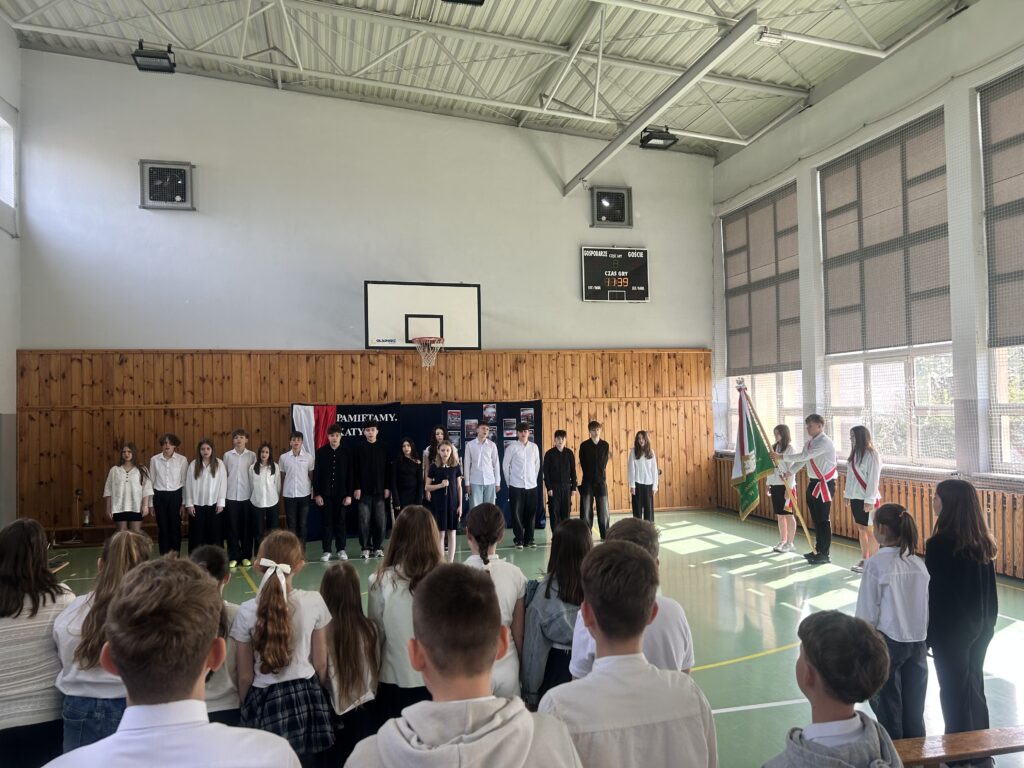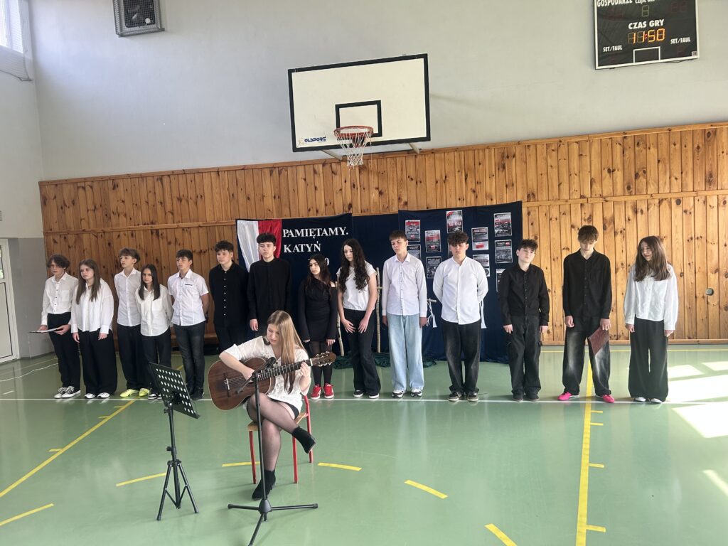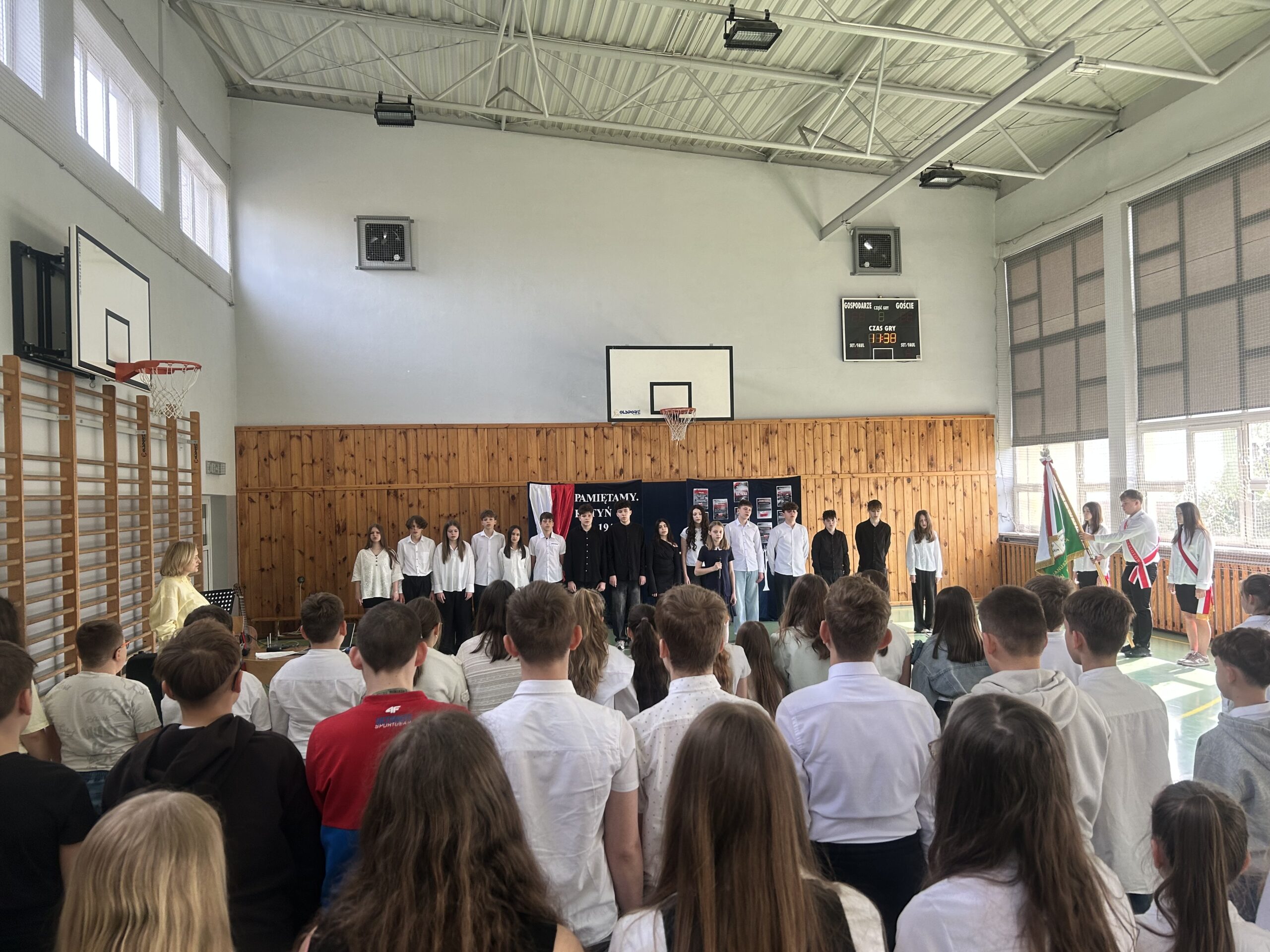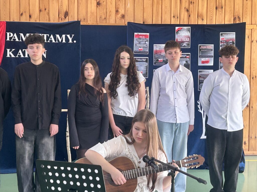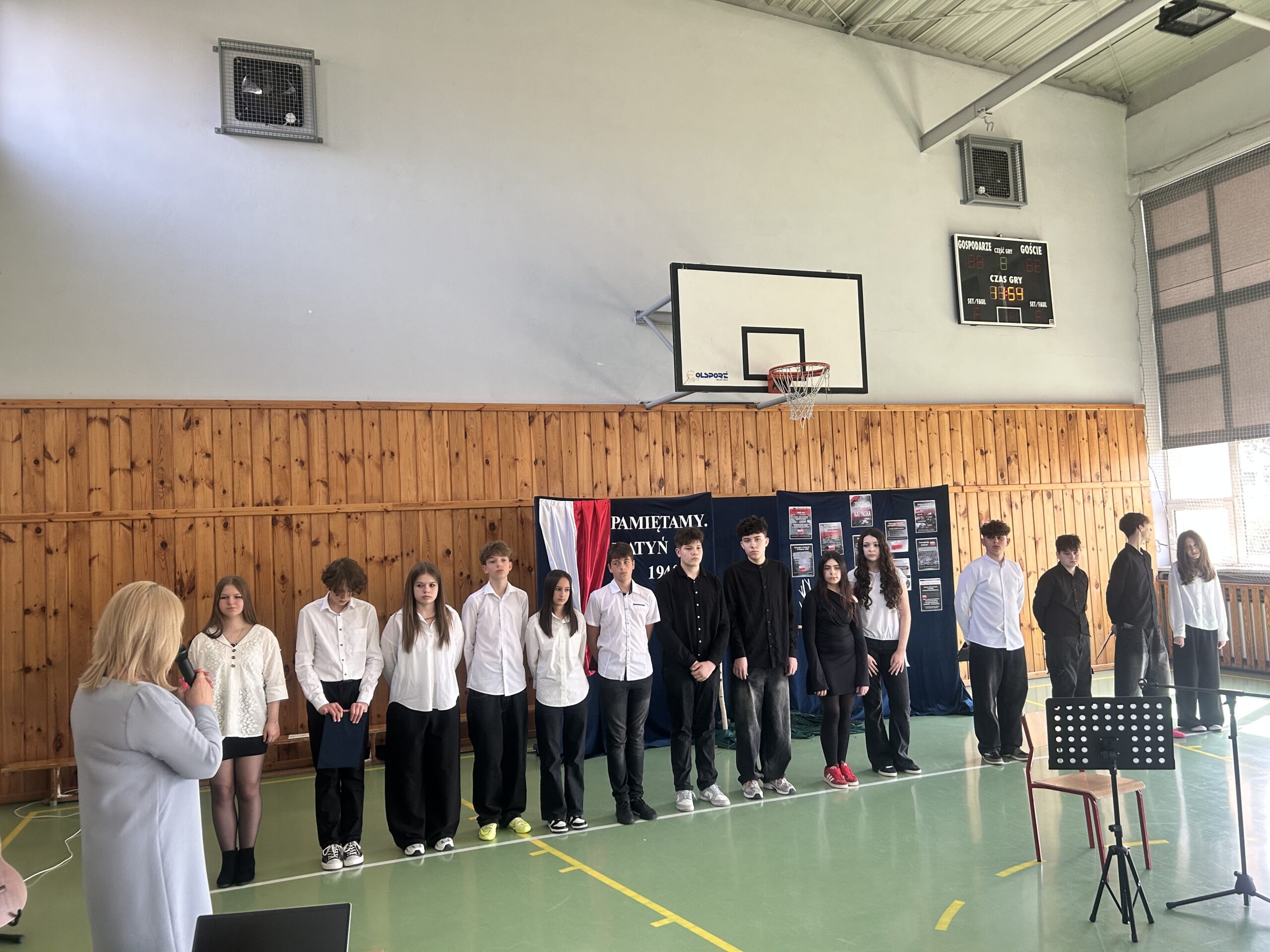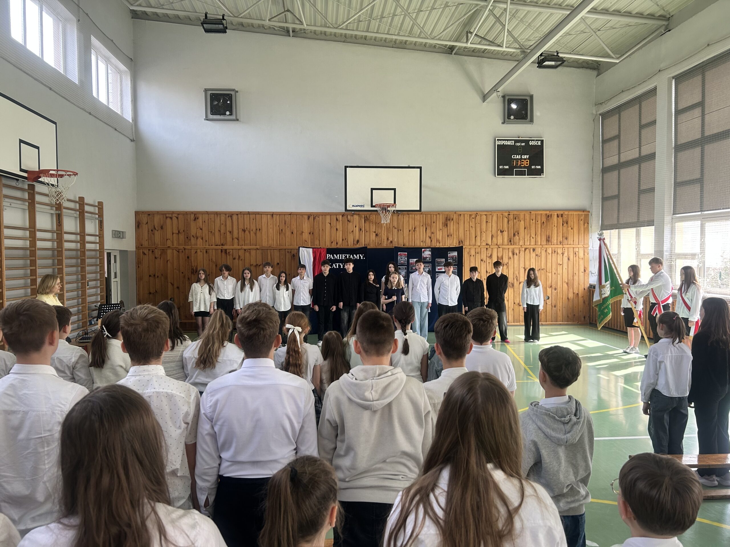 Uroczystość rozpoczęła się wprowadzeniem sztandaru szkoły 🎌 oraz odśpiewaniem hymnu narodowego 🎶🇵🇱. Następnie uczniowie przedstawili program artystyczny, na który złożyły się wiersze , fragmenty listów oraz utwory muzyczne nawiązujące do tragicznych wydarzeń z historii Polski. Szczególnie poruszająca była ballada „Ostatni list” 💔 w wykonaniu Julii Świtalskiej-Matusiak 🎤.