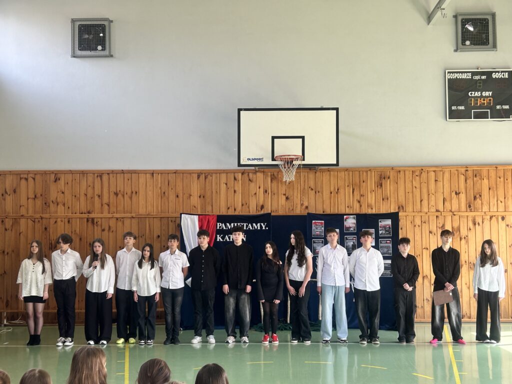 Dnia 16 kwietnia w naszej szkole odbyła się uroczysta akademia poświęcona Dniu Pamięci Ofiar Zbrodni Katyńskiej 🕯️. Wydarzenie miało na celu uczczenie pamięci tysięcy polskich oficerów 🇵🇱, przedstawicieli inteligencji 📚 oraz innych obywateli Polski, którzy zostali zamordowani w 1940 roku przez NKWD. Jednym z nich był nauczyciel naszej szkoły ppor. rezerwy WP – Stanisław Fijałkowski.