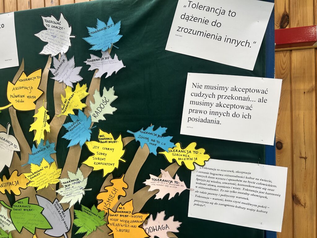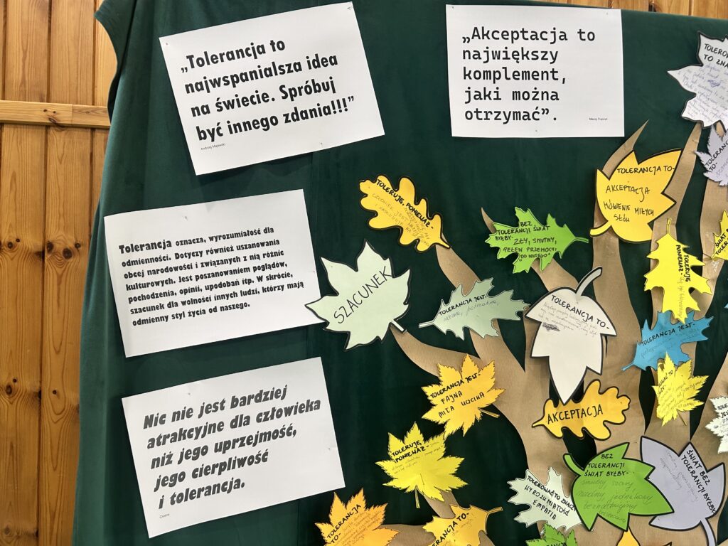 W ramach obchodów tego wyjątkowego dnia uczniowie uczestniczyli w zajęciach poświęconych empatii i wyrozumiałości 💚. Na szkolnym korytarzu pojawiło się „drzewo tolerancji”, na którym pojawiły się hasła promujące akceptację i równość 👩🏾‍🦰👨🏿👩🏽‍🦱👧🏻👧 .